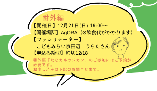 たなカルのジカン番外編(12月21日開催)ご参加にはお申込みが必要です。