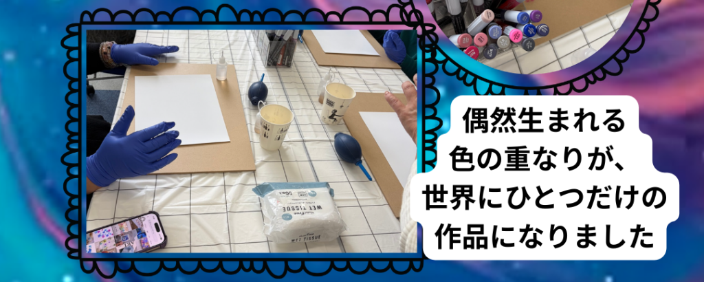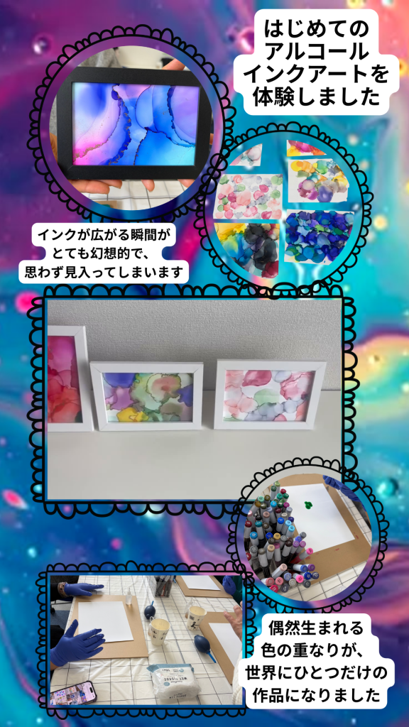 みなさん今回が初めてのアルコールインクアート体験でしたが、初めてでもとても楽しい時間を過ごすことができました!