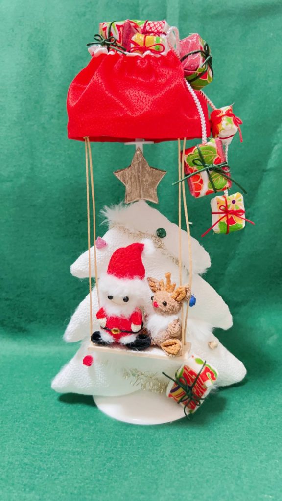 丹後ちりめん、正絹、金襴の生地を使用してクリスマスのあわてんぼうのサンタクロースのお飾り、お正月の鏡餅のお飾り、その他クリスマスリース、来年の干支の縁起良い馬のお飾りや来年のお雛様などを作製予定にしております。
