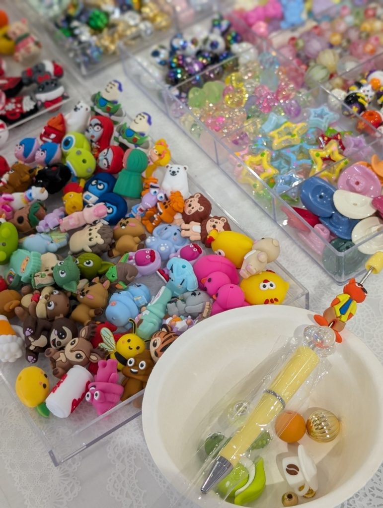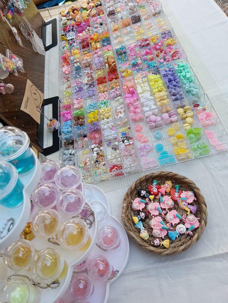モールフラワーやチャーム、アクセサリーの販売とイニシャルチャームを自分で作れる簡単なワークショップを行います。