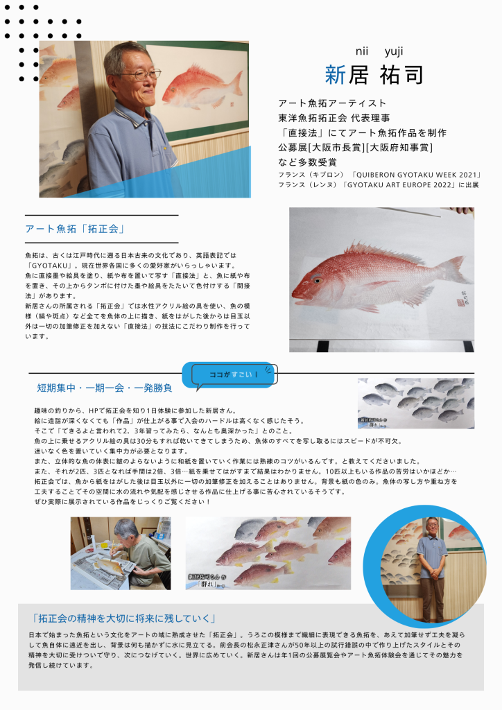 新居さんは年1回の公募展覧会やアート魚拓体験会を通じてその魅力を発信し続けています。