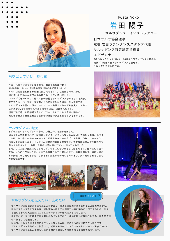 今回ご紹介するのは、サルサダンスインストラクター 岩田 陽子 さんです。
